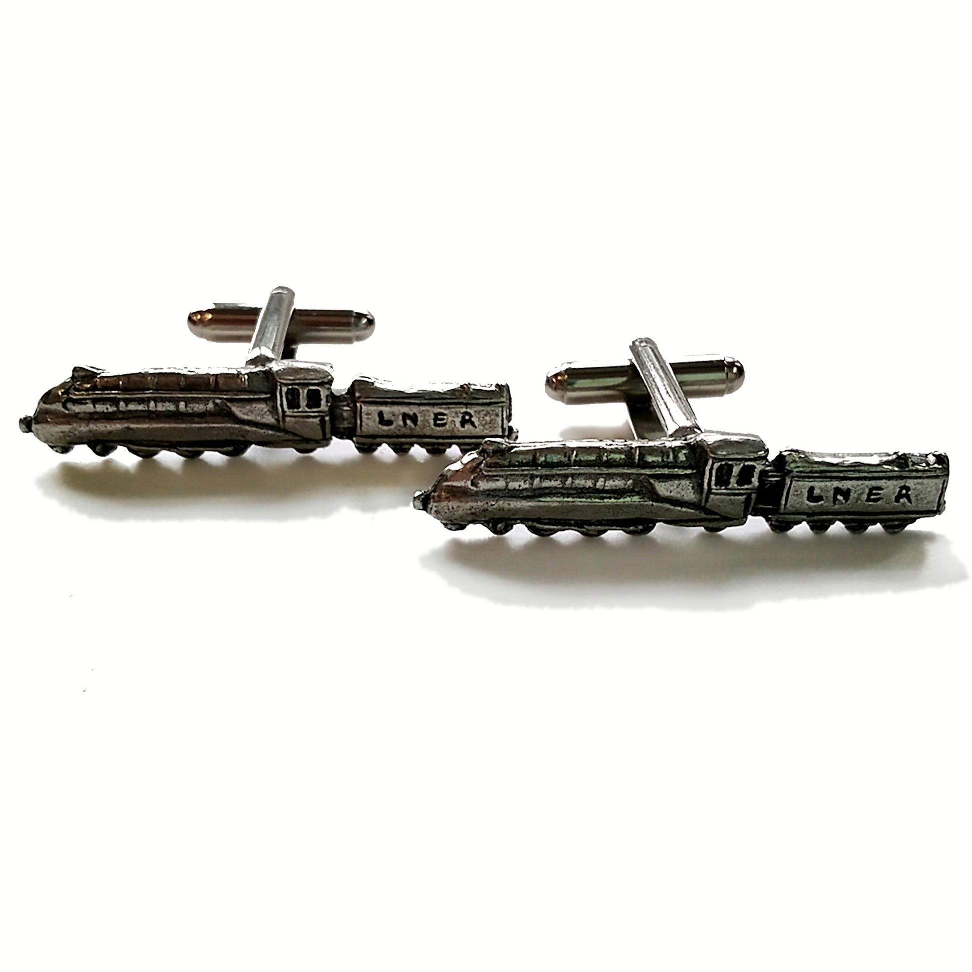 A fabulous pair of cufflinks in the form of the Mallard locomotive. Handcrafted in Yorkshire using the finest grade of lead free, English pewter.