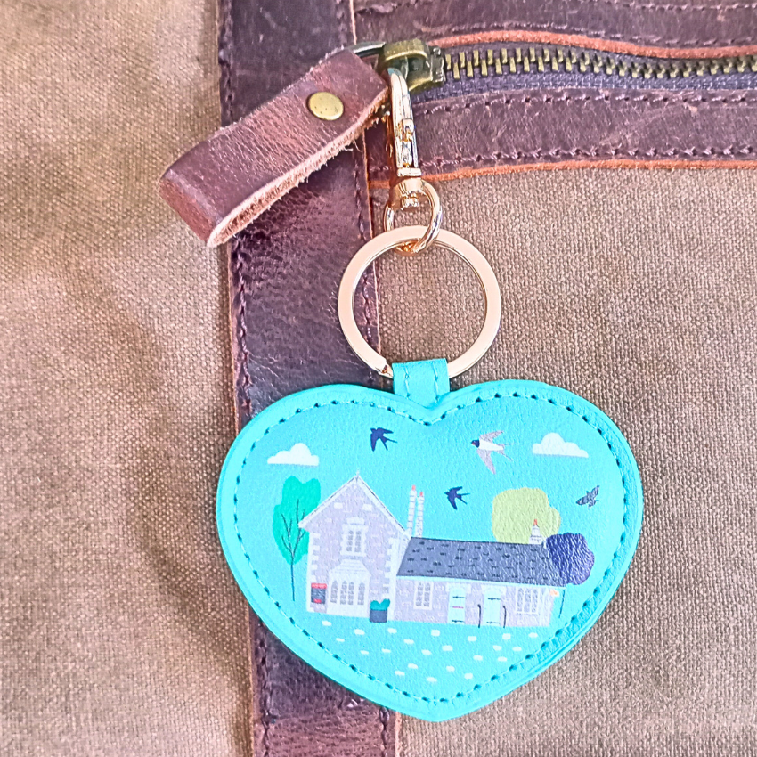 A gorgeous bag charm featuring Grosmont Station with swallows dipping and diving in the sky overhead. North Yorkshire Moors Railway is debossed on the reverse. The clasp and ring is rose gold coloured metal.