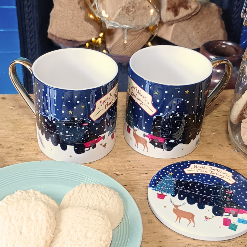 Designed by local Whitby artist Jessica Hogarth, this bone china mug features a Christmas scene on the NYMR.