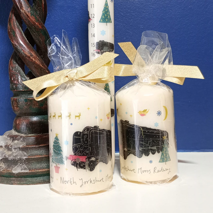 A small but perfectly formed candle covered in locomotives and Christmas trees in the Jessica Hogarth design. Comes wrapped and tied with a ribbon.