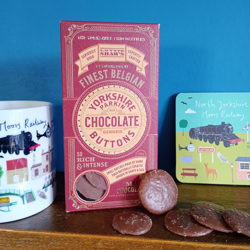 These are some Proper Posh Yorkshire Parkin Chocolate Buttons! Made from the finest rich, Belgian milk chocolate with natural ginger oil and Yorkshire Parkin ginger biscuit crumbled through.