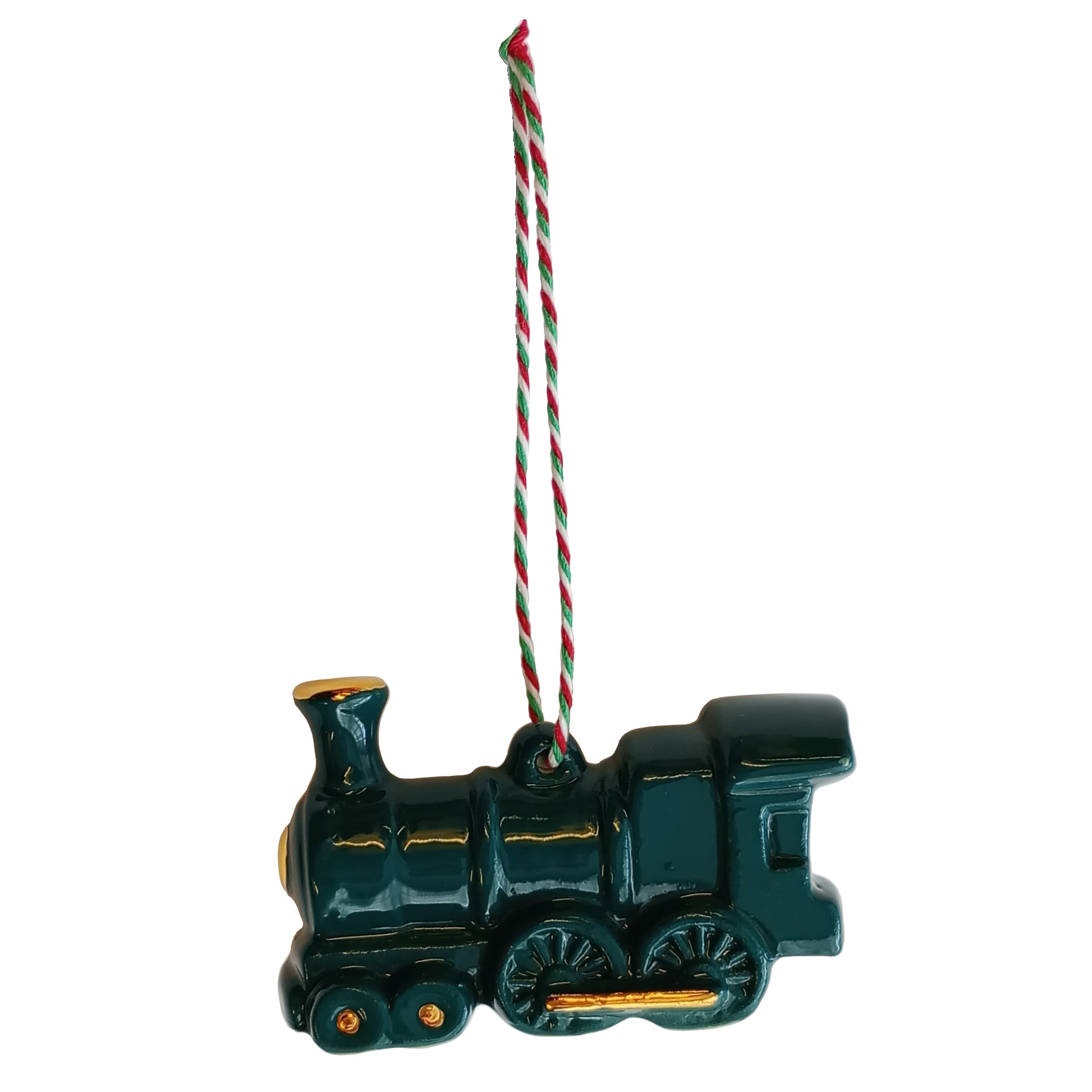 A ceramic locomotive with gold detail, beautifully handcrafted in Yorkshire.
